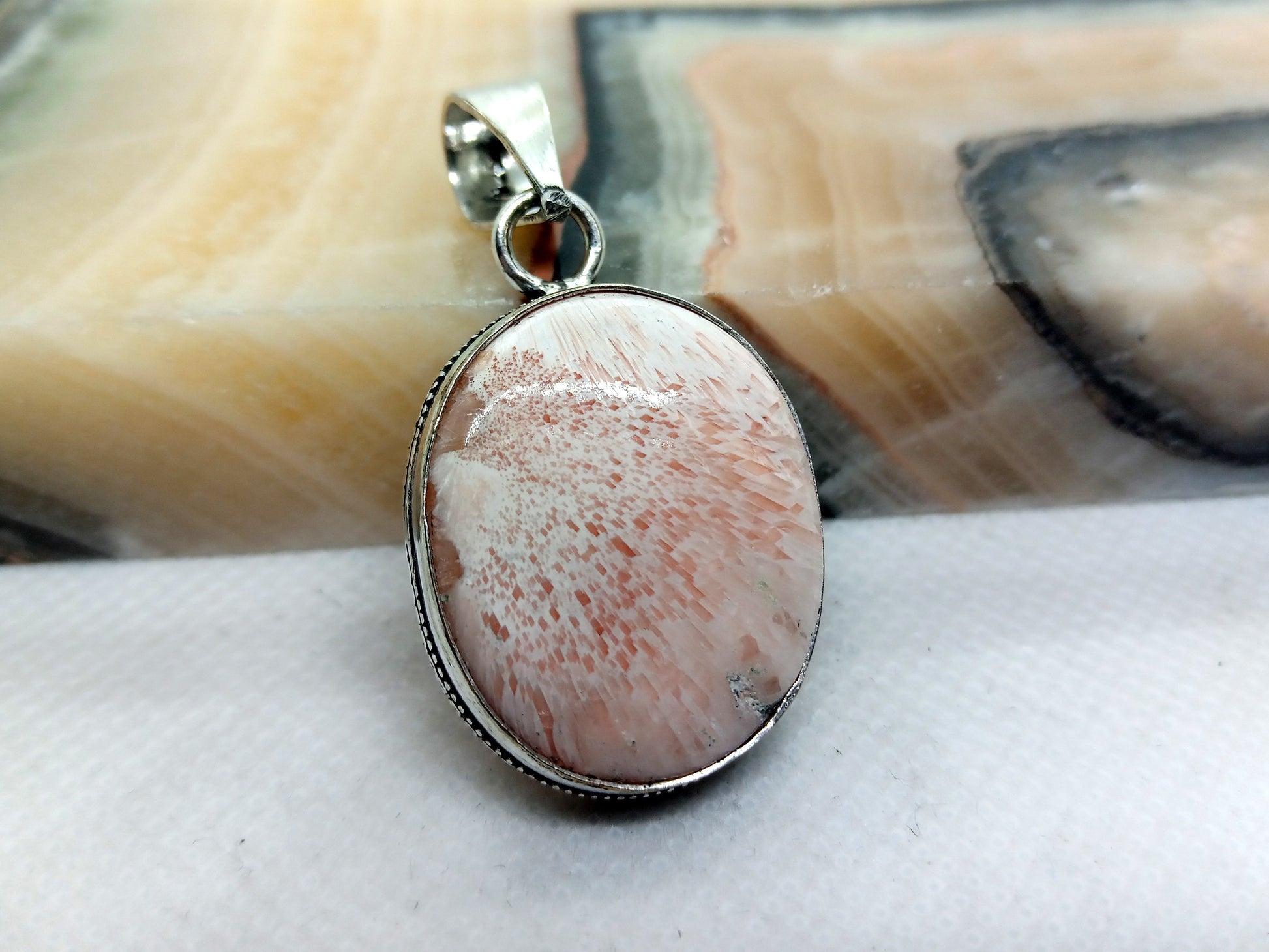 Skolecit je jeden z členů skupiny minerálů nazývaných zeolity. Je to jemně vláknitý minerál, obvykle bílé nebo bezbarvé barvy, i když může nabývat i růžových, červených nebo žlutých odstínů. Skolecit je známý svými nádhernými krystalickými tvary a vláknitými agregáty, které mohou vytvářet atraktivní vzory. V šperkařství je občas používán díky svému jedinečnému vzhledu, zejména pro výrobu kabošonů. V esoterice je skolecit považován za kámen klidu a harmonie, který může pomoci při meditaci a napomáhat duchovní komunikaci. Skolecit se také nazývá jako andělská křídla, díky svému péřovitému vzhledu. Pro výrobu šperků jsou proto velice ceněné kabošony vybroušené do tvaru křídel. Věří se také, že podporuje sebevyjádření a pomáhá s emocionálním léčením. Skolecit se těží v mnoha částech světa, ale hlavní naleziště lze nalézt v Indii, USA a v některých evropských zemích.