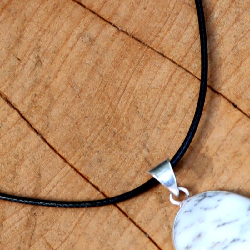 Broušený kabošon zasazený do postříbřeného kovu (měď nebo bronz). Ryzost stříbra je 925/1000.