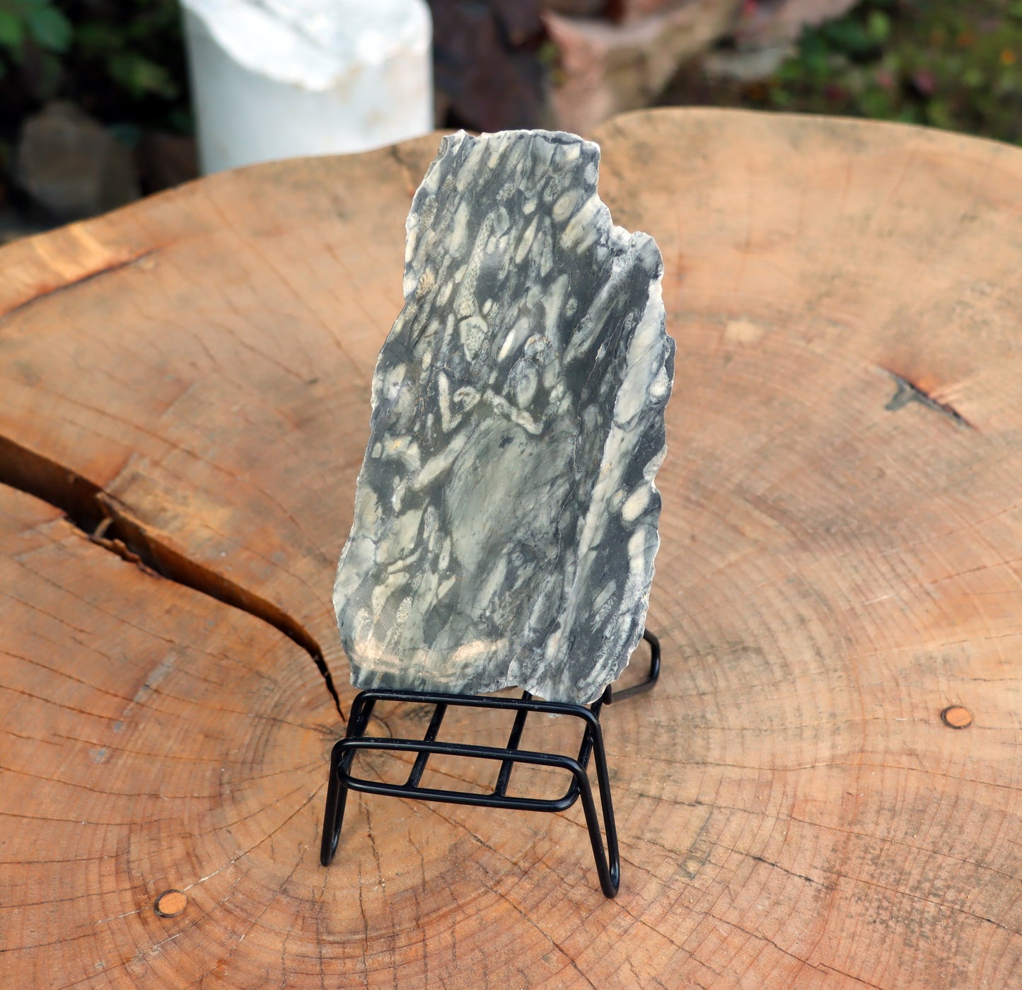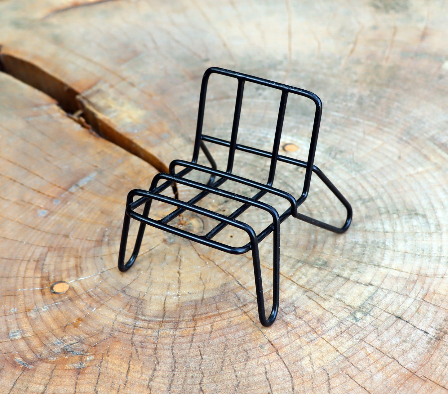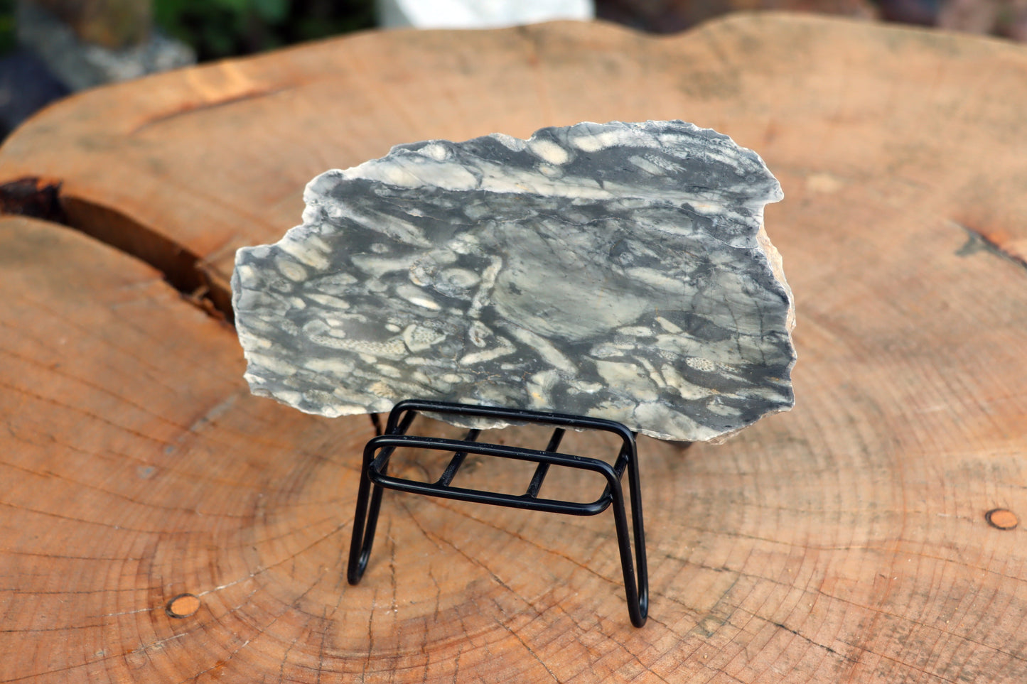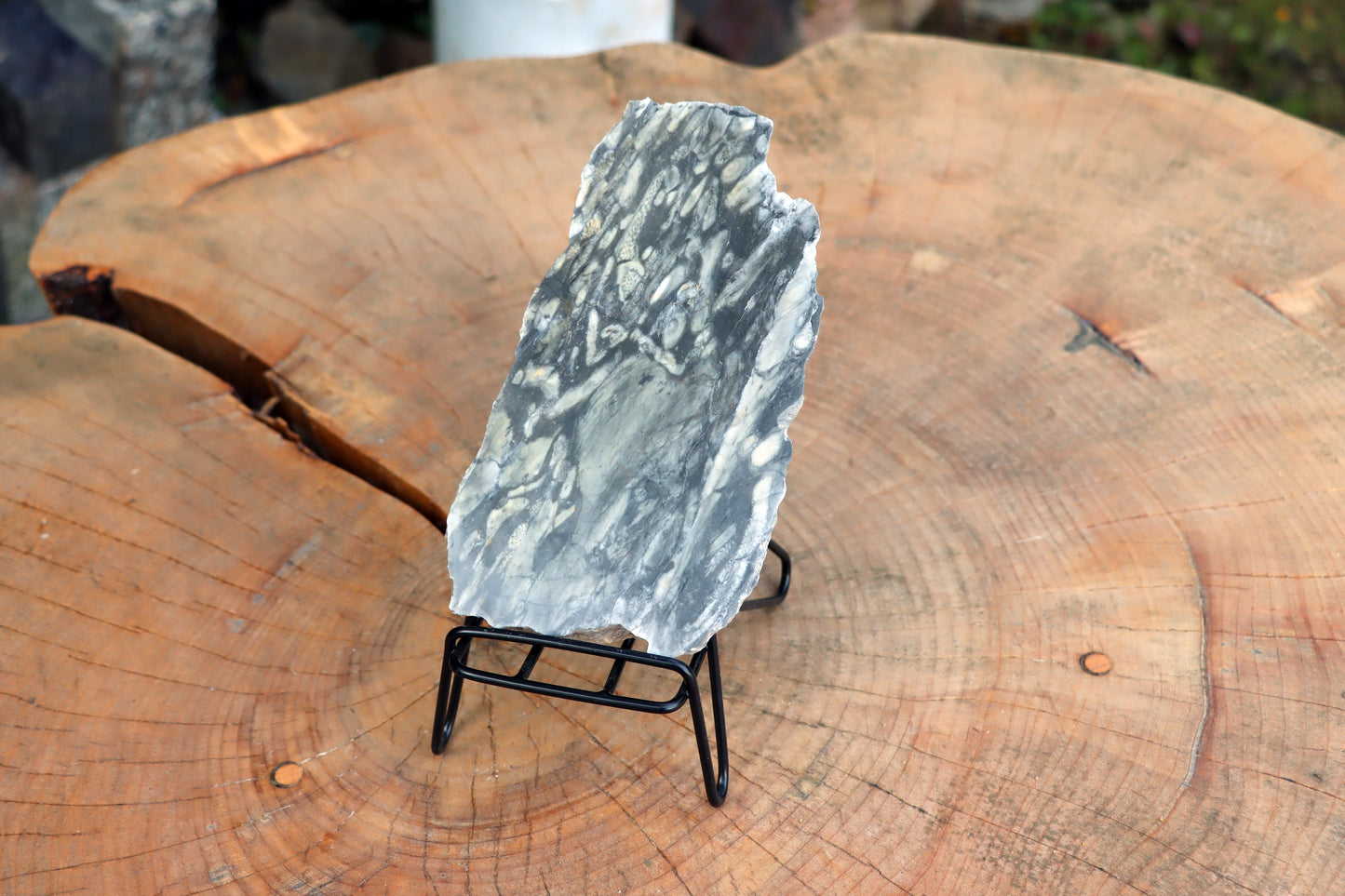 Stojánek kovový černý. Zarážky zajišťují dobré ukotvení kameny a díky němu je možno i polohovat.