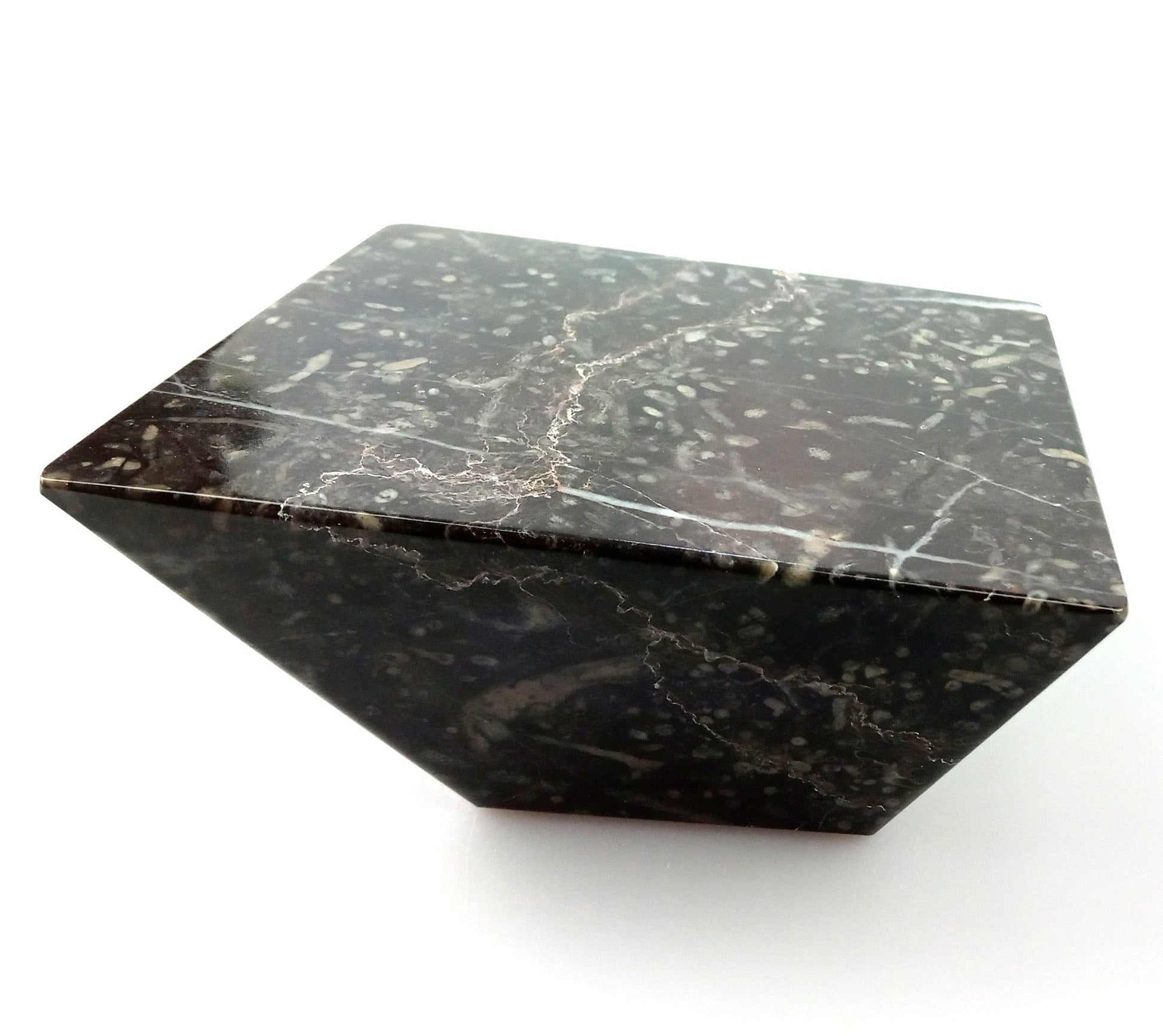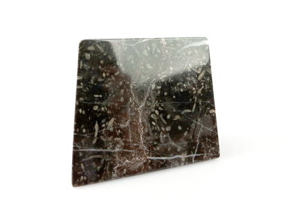 Broušený kabošon zasazený do postříbřeného kovu (měď nebo bronz). Ryzost stříbra je 925/1000.