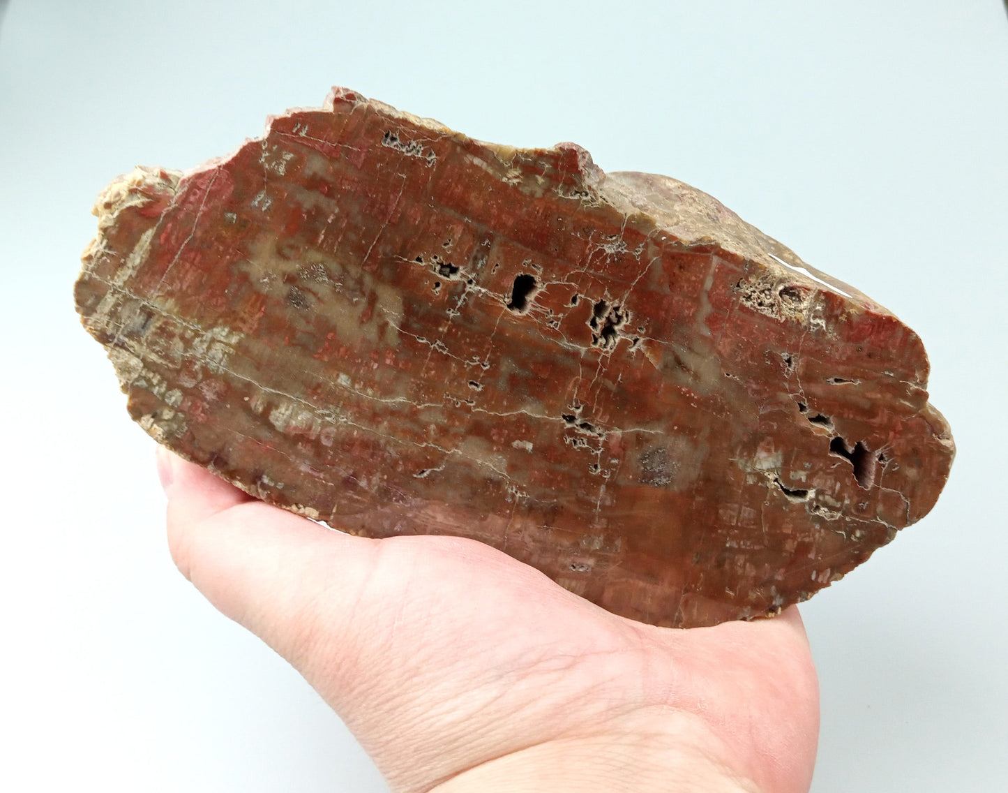 Příčný řez červeně probarveným jehličnatým dřevem typu Dadoxylon.