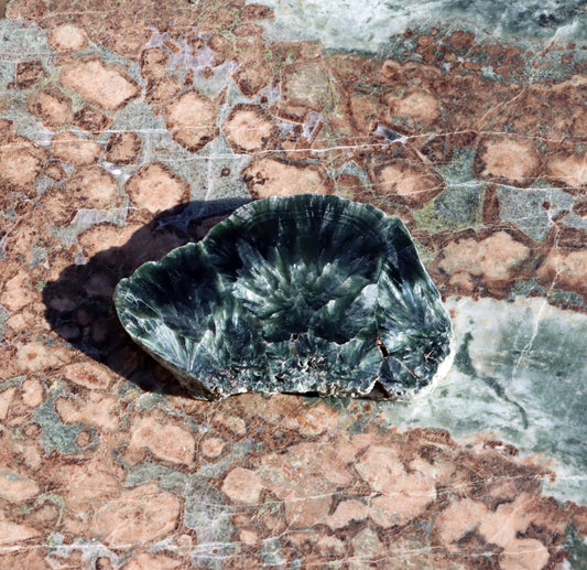 SlevaSerafinit pyrit křišťál v dutině pruhovaného amfibolitu